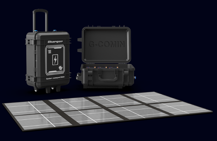 - Das Solarpanel wird mit einem Verbindungskabel am Koffer angeschlossen