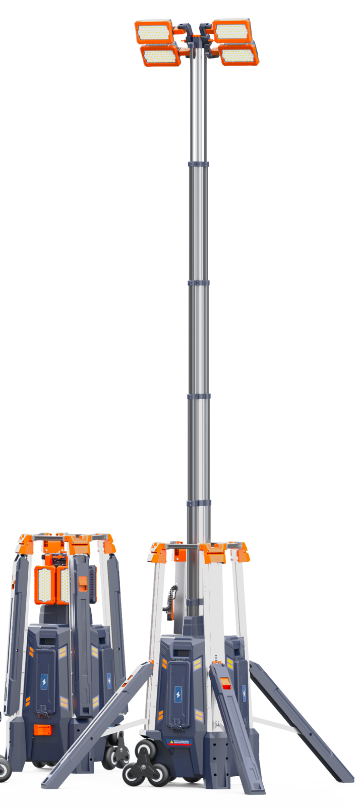 MC-Set: Mobiler Beleuchtungsmast mit 4 LED-Scheinwerfern, mit Akku- oder Netzbetrieb