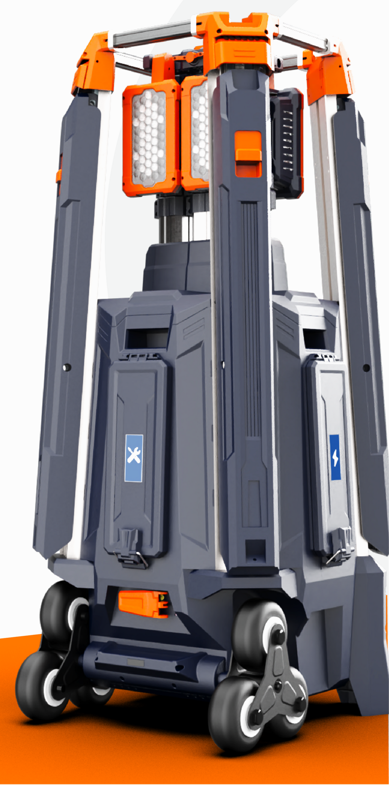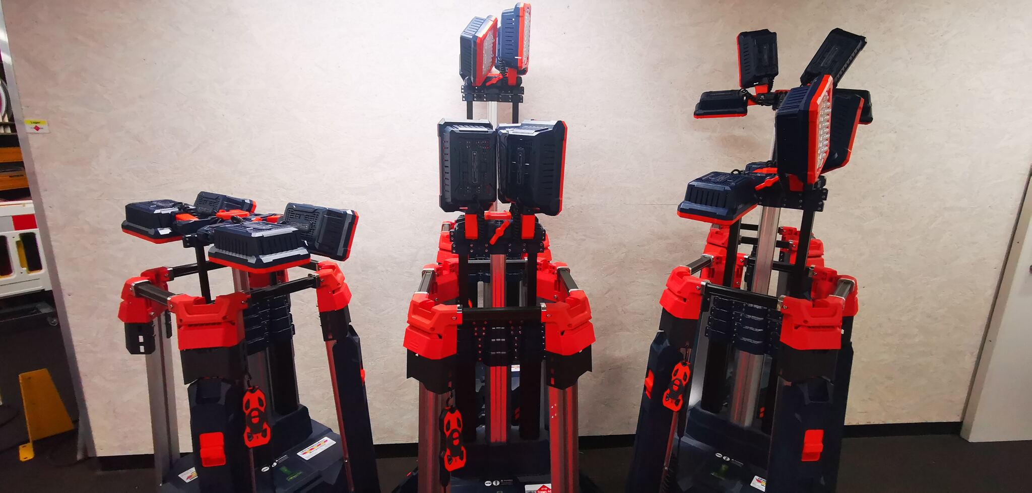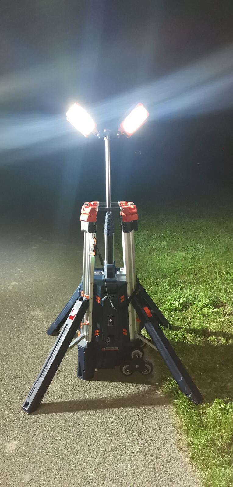 Diese mobile Beleuchtung mit Akkubetrieb leuchtet alle Situationen professionell aus. Ob Baustellen, Einsatzstellen, Parkplätze oder Notausgänge.