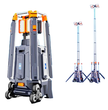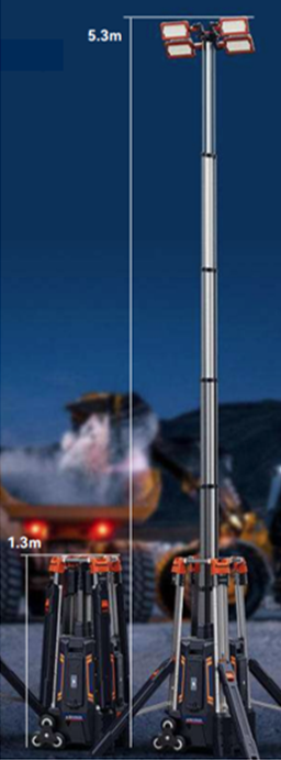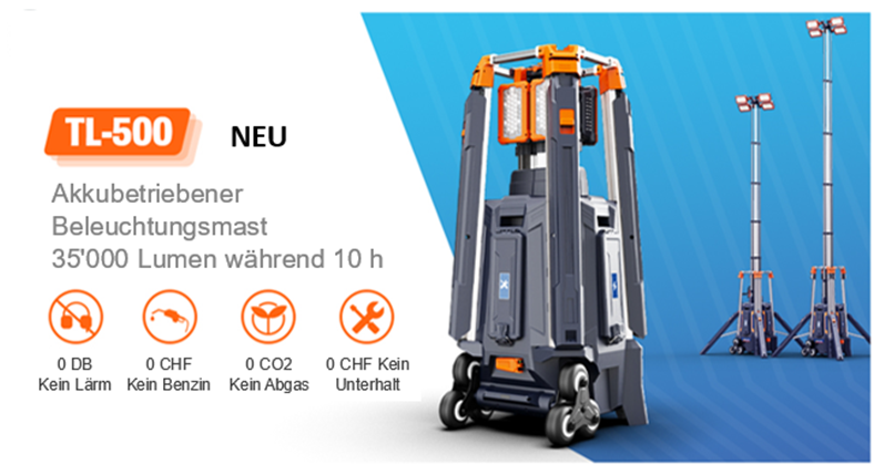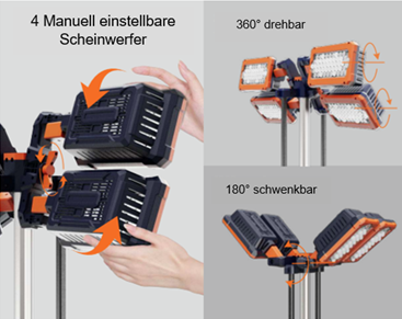 - 4 einzeln verstellbare Hochleistungs-Scheinwerfer auf einem Teleskopmast